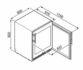 В стандартном исполнении на винные холодильники устанавливается дверь, которая открывается слева направо. При этом для более удобного открывания и адаптации к условиям в помещении дверь можно перенавесить и тем самым изменить сторону ее открывания.