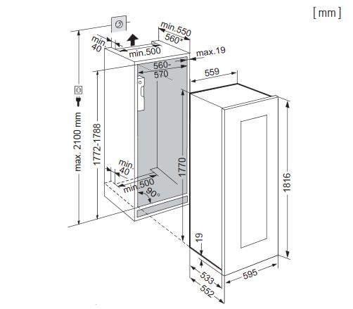 Винный шкаф Liebherr EWTgb 3583 имеет перевешиваемые двери, что позволяет установить его в любом месте кухни.