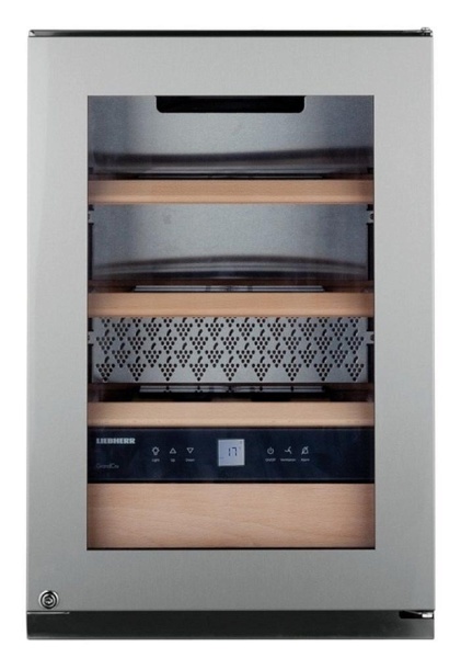 Полезный объем отделения — 38 л. Внутреннее пространство заполнено тремя полками из натурального дерева. В базовый комплект включен фильтр из активированного угля для очистки воздуха и ящик для принадлежностей. Циркуляционное охлаждение PowerCooling, способствует равномерному распределению температуры внутри и создает идеальные условия для хранения благородного напитка. Защита от детей не даст ребенку внести свои изменения в настройки системы. Встроенная сигнализация предупредит о возникновении аварийной ситуации заблаговременно.